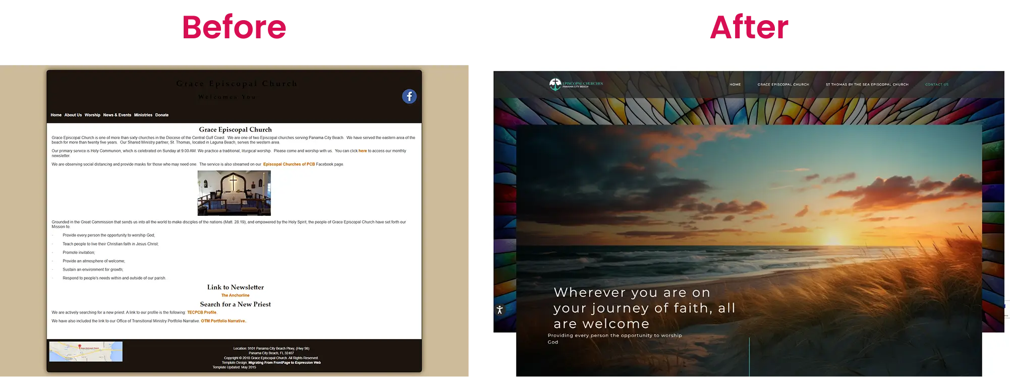 Grace Episcopal Church and St. Thomas by the Sea each had their own history and community, but their website did not clearly show how they connected.