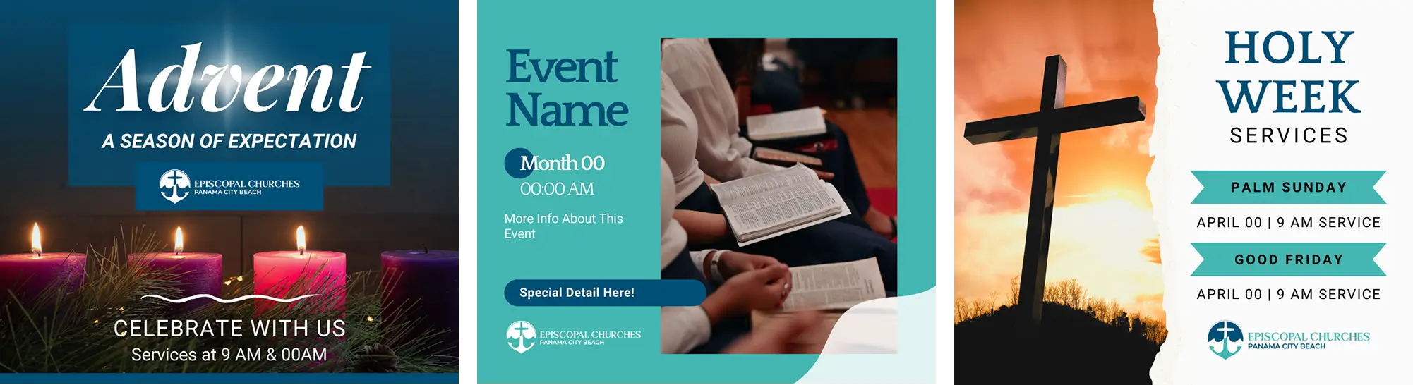 To help the churches begin using their new branding right away, we created a set of Canva and email templates for common needs like Holy Week, Advent, events, and announcements.