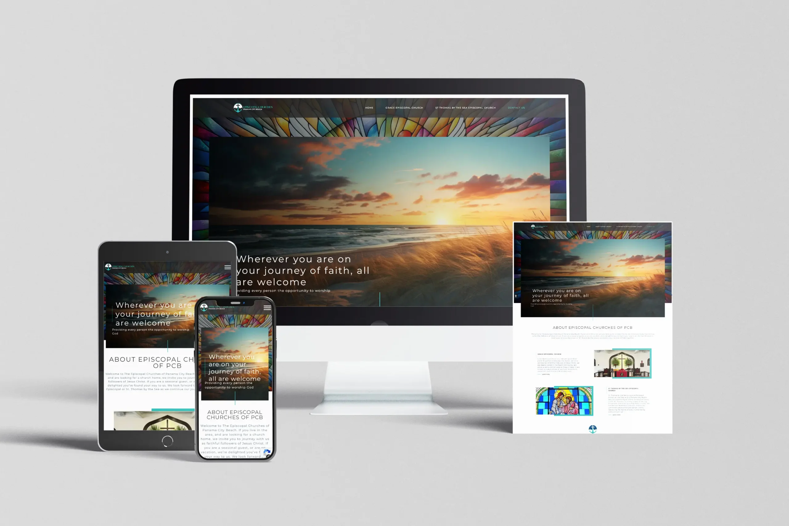 For the main Episcopal Churches of PCB identity, we combined visual elements that represent both congregations and introduced the emerald water tone the client wanted, subtly tying the brand to its coastal location.
