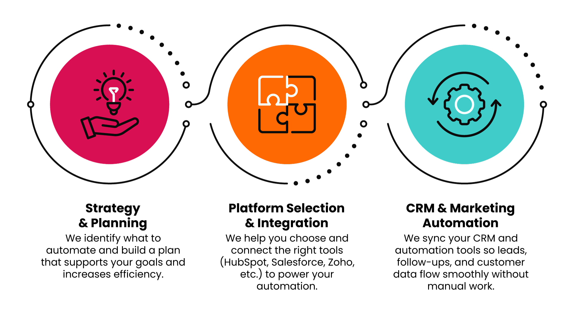 Our approach to marketing automation is all about building solutions that work for you. We create customized strategies designed to save time, boost engagement, and deliver measurable results. Every automation plan we develop is tailored to your specific goals, helping your business run smoothly and efficiently.